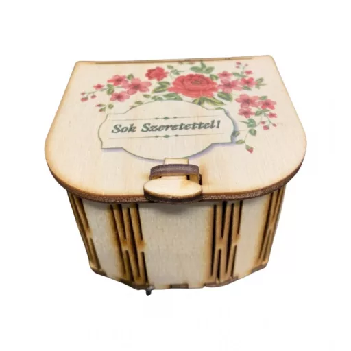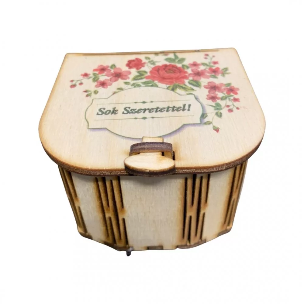 Fa díszdoboz - mini - Sok szeretettel, rózsás Fa díszdoboz - mini - Sok szeretettel, rózsás