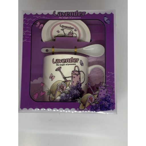 Bögre kerámia kanállal és tetővel